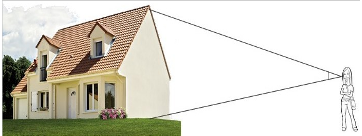 Orphée souhaite connaître la hauteur d'une maison située à 66 mètres d'elle. Elle porte sa main à bout de bras et arrive juste à cacher la maison avec ses 5 doigts.