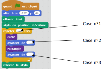 Indiquer ce qu’on l’on doit mettre dans chaque case vide numérotée.