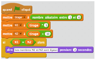 Quelle est la probabilité qu'à la fin du programme, le lutin dise "les nombres N1 et N2 sont éguaux" ?