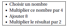 Le programme donne 30 comme résultat final, quel est le nombre choisi au départ ?