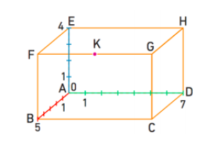 Donner l'abscisse, l'ordonnée et l'altitude des sommets du parallélépipère et du milieu K du segement [FG].