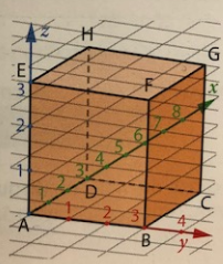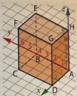 Dans le repère ci-dessous, donner les coordonnées des somments du pavé droit.